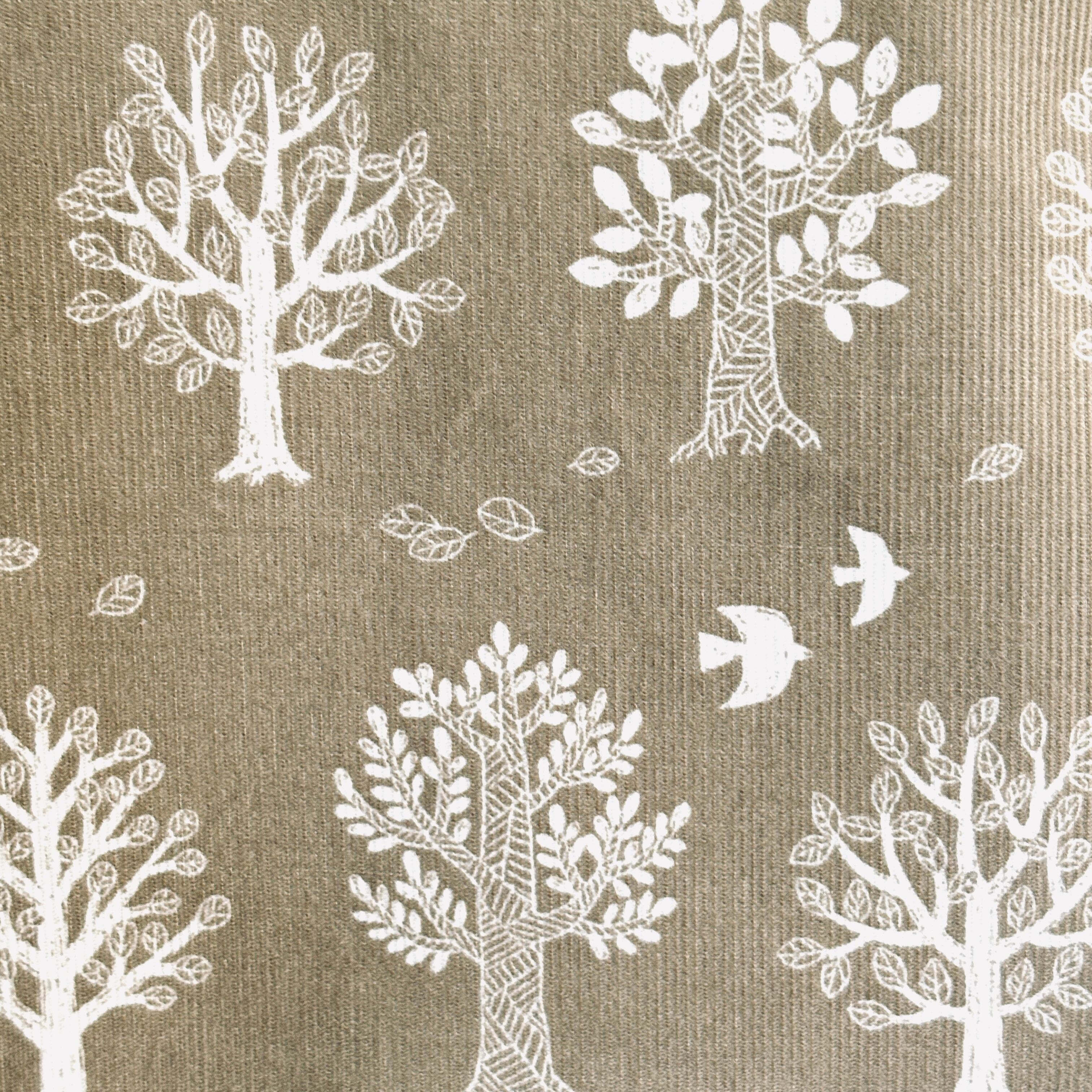 表地 持ち手、薄手の木と鳥柄 細コーデュロイ生地(綿100%)