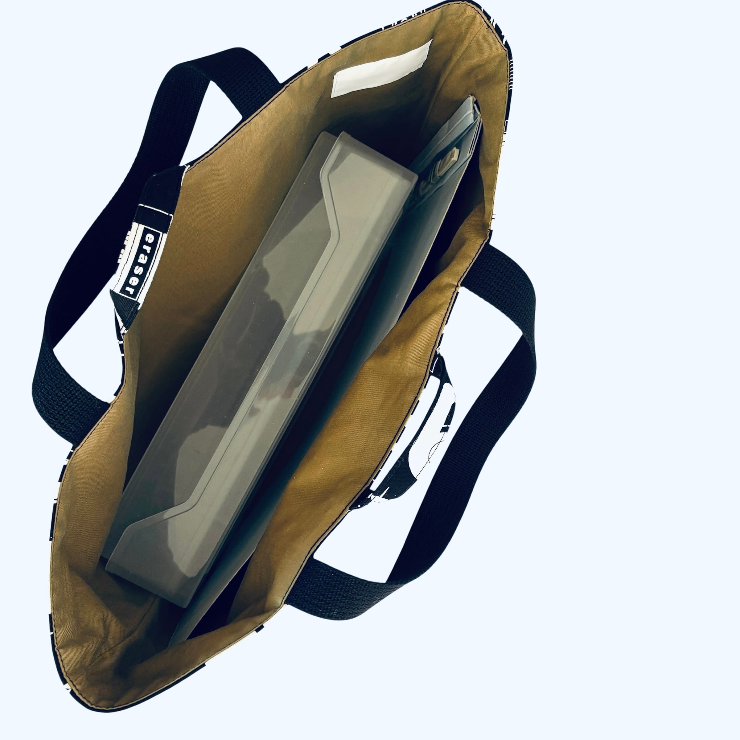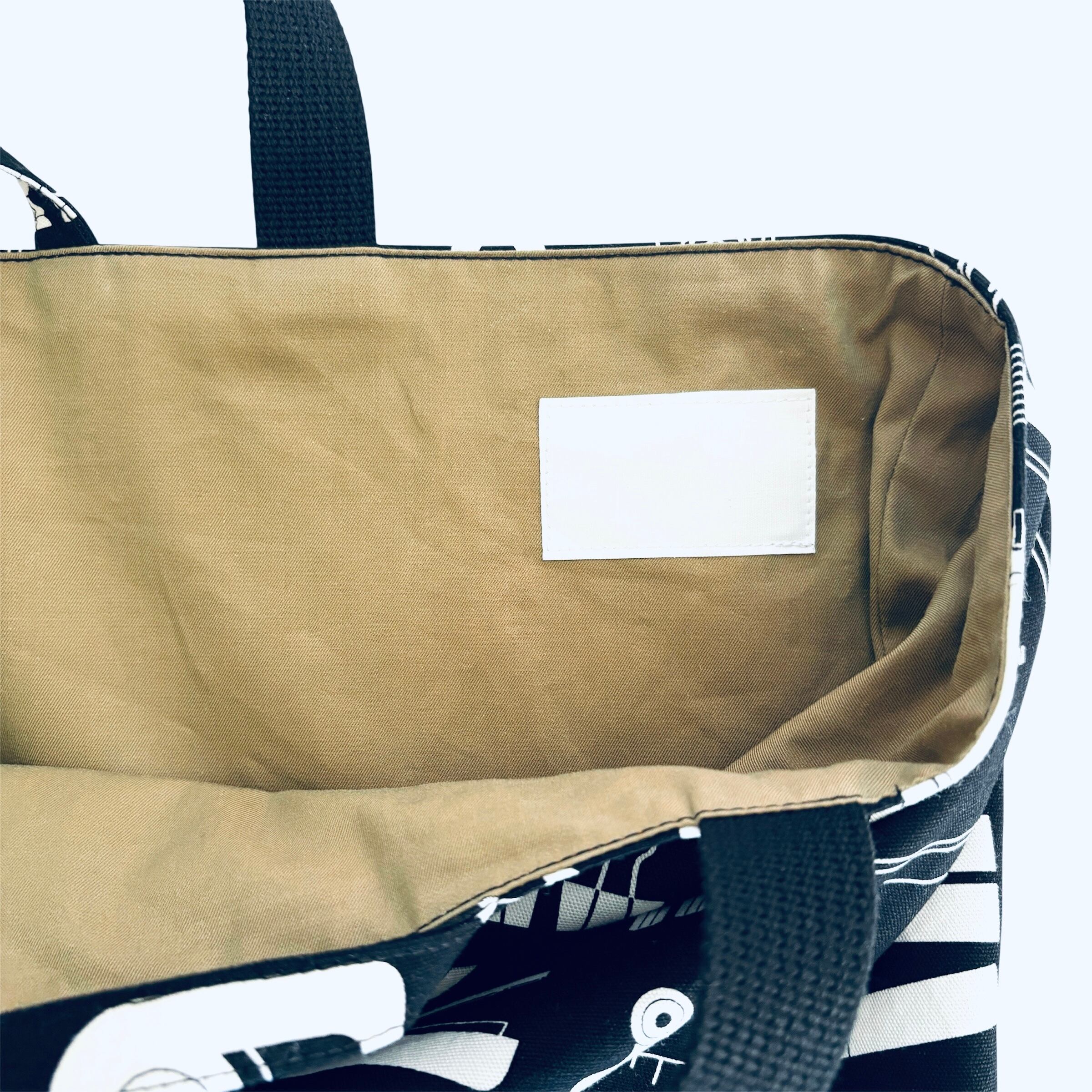 すぐお使いいただけるように、内布に大きめお名前テープを縫い付けました。