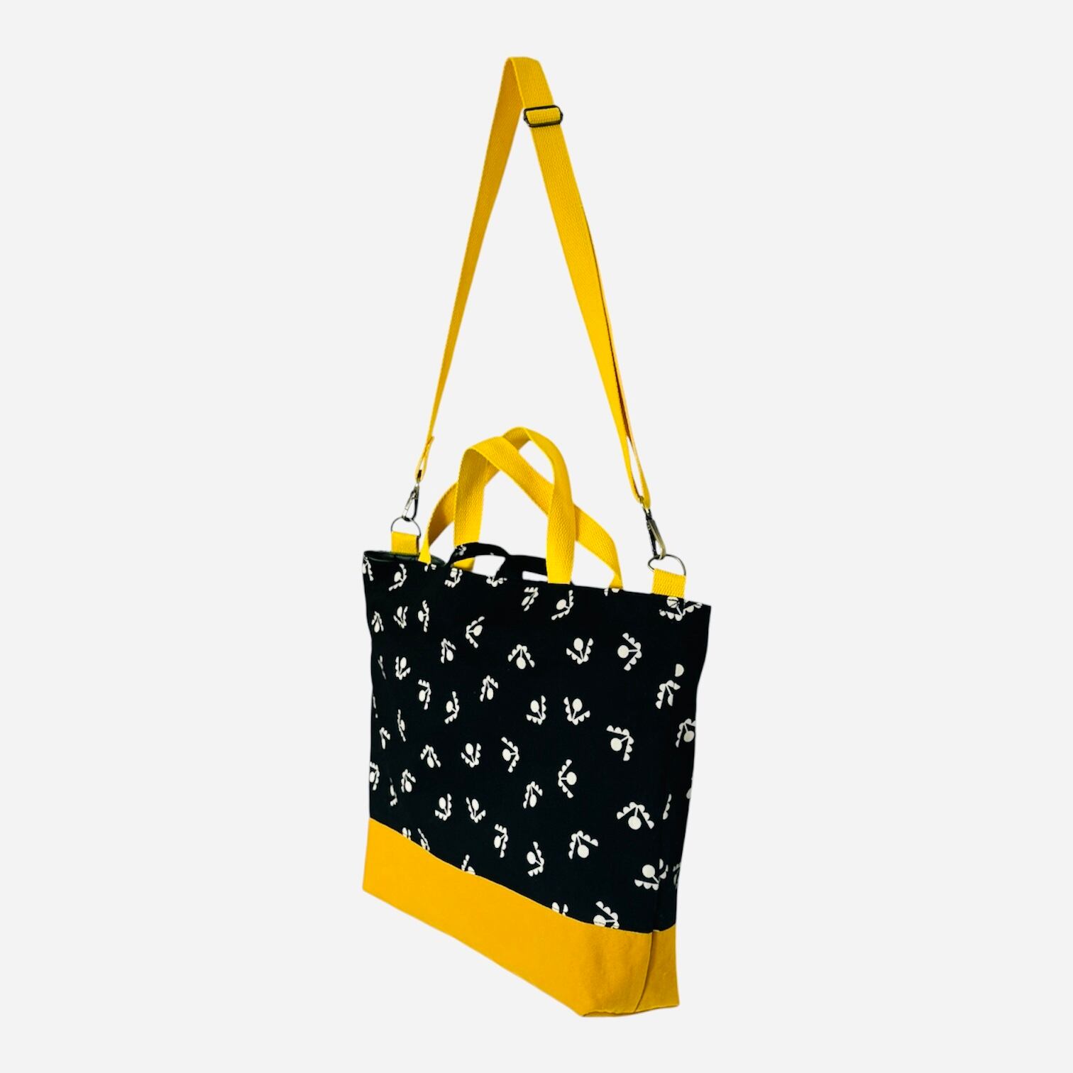 【再販可】大きめ 蒲公英レッスンバック 11号帆布山吹色切替 ループ 35×45 ショルダーベルト付