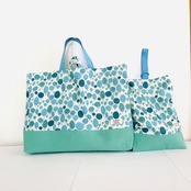 【再販可】大きめサイズ 優しい森へレッスンバッグ(35×45)Dカン上履き(30×22)セット アイスブルー エメラルドグリーン帆布切替