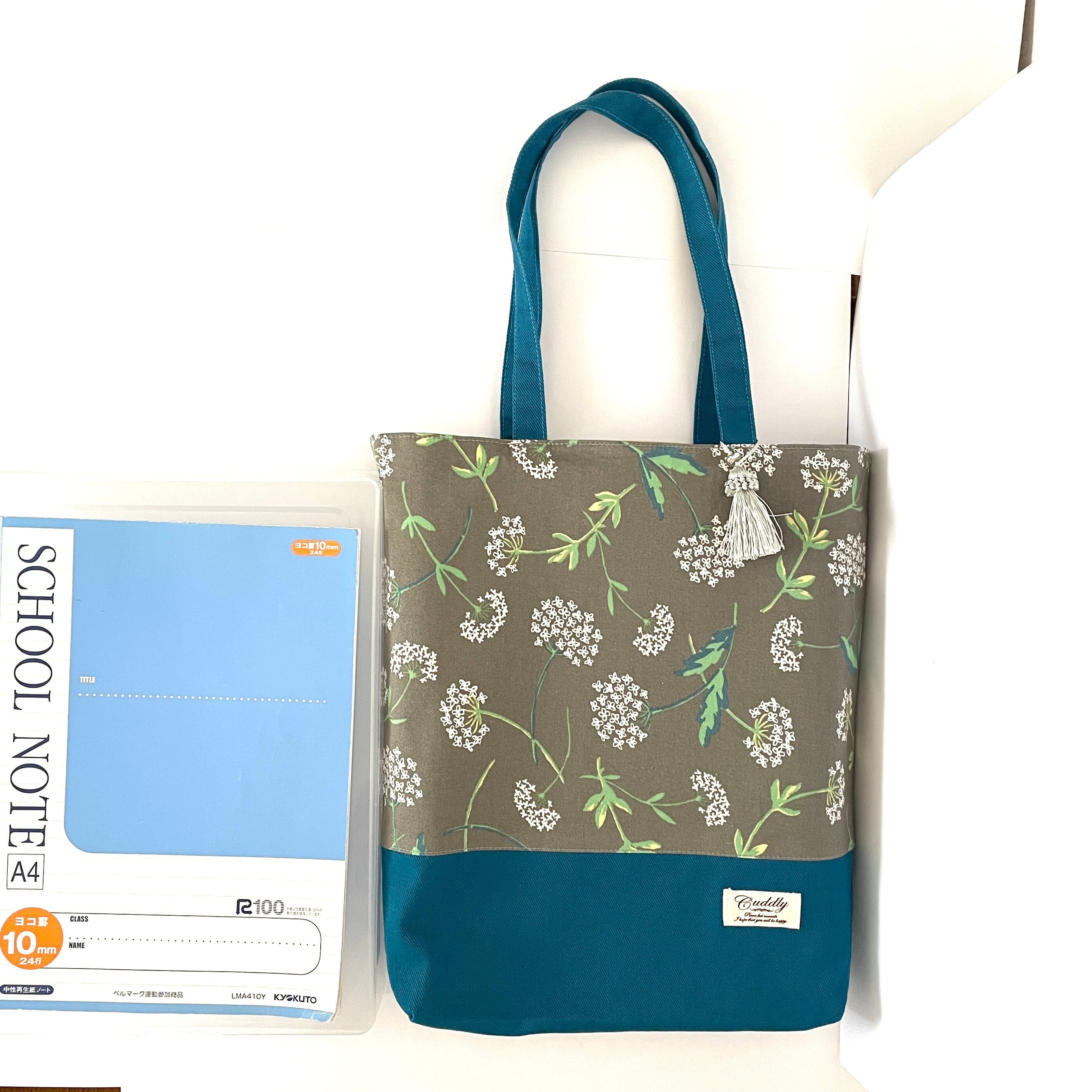 かわいいシロツメクサ柄に惹かれて肩掛けもできるおしゃれなA4トートバッグ製作しました。