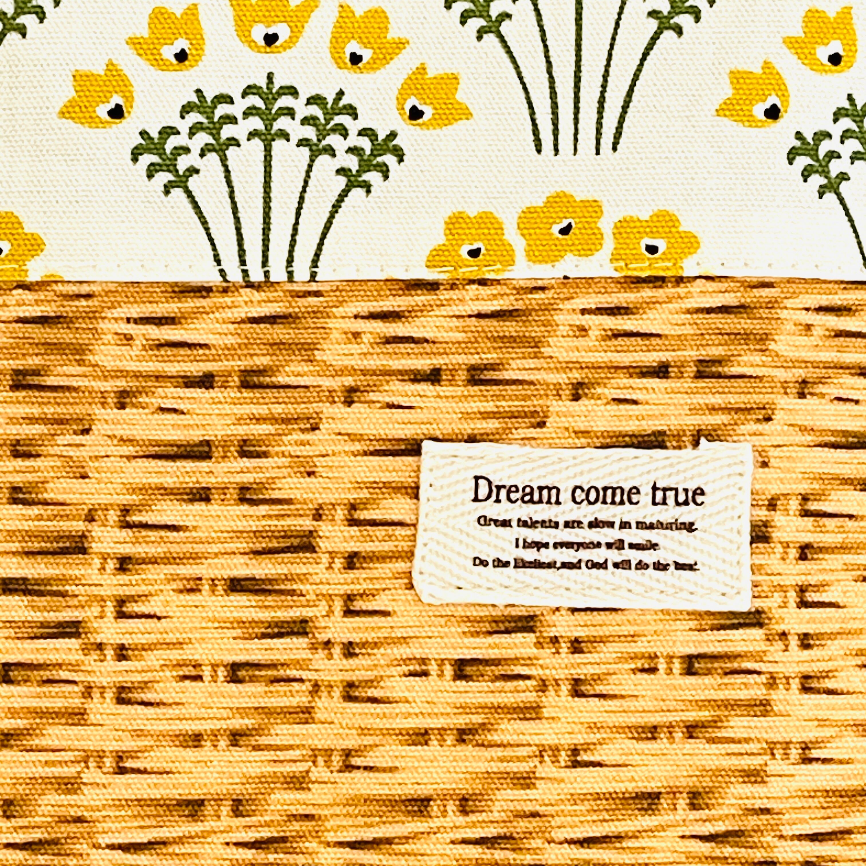 【再販可】花束をかごに、イエロー 藤柄切替 肩掛け可能A4トートバッグ タッセル付き