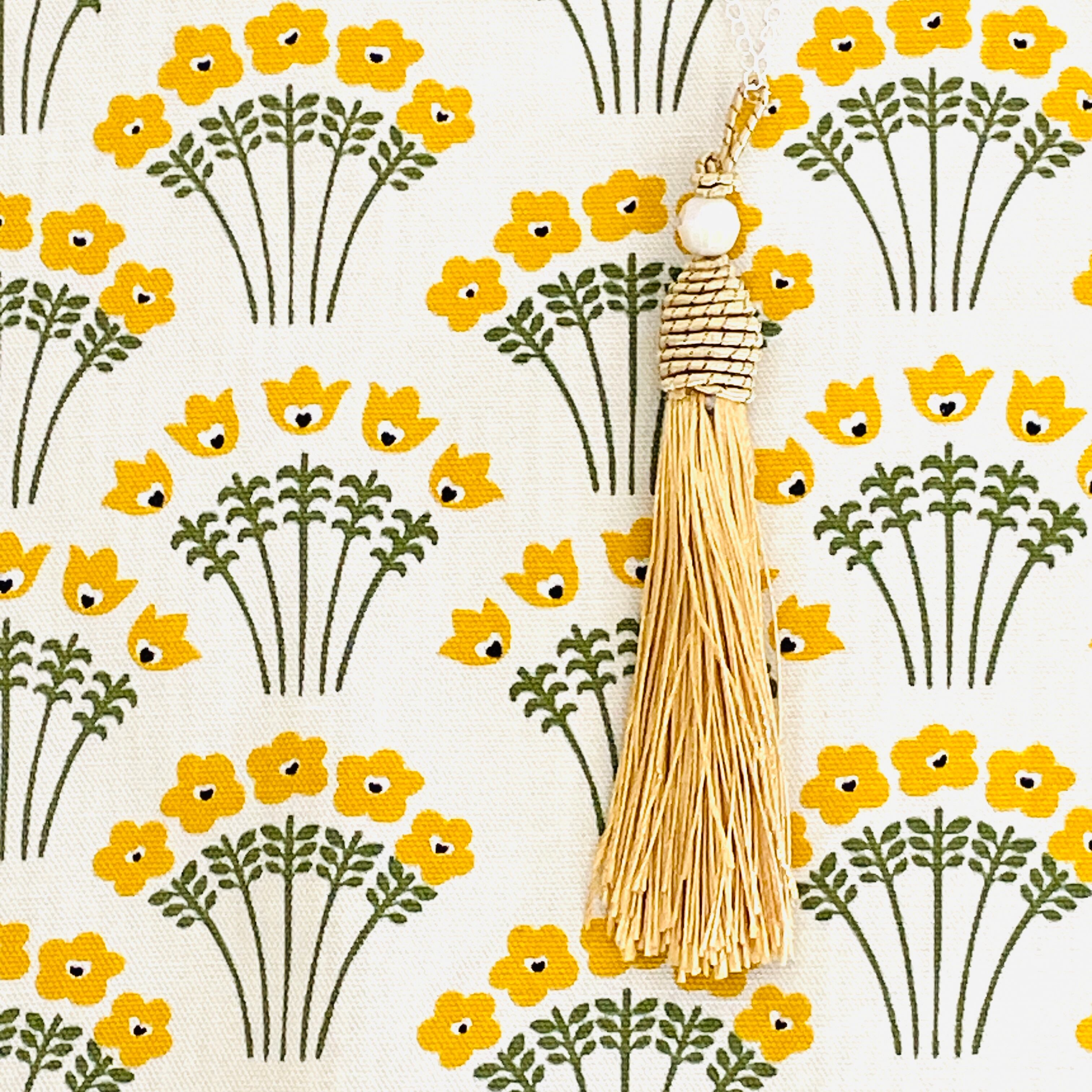 ゴールドのタッセルをつけると、おしゃれな雰囲気に。