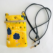 【再販可】コーデュロイ北欧柄スマホポーチ ファスナー、タッセル付 イエロー