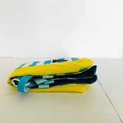 【再販可】大きめサイズ 爽やかスカイブルー縦縞レッスンバック 11号帆布イエロー切替 ループ 35×45