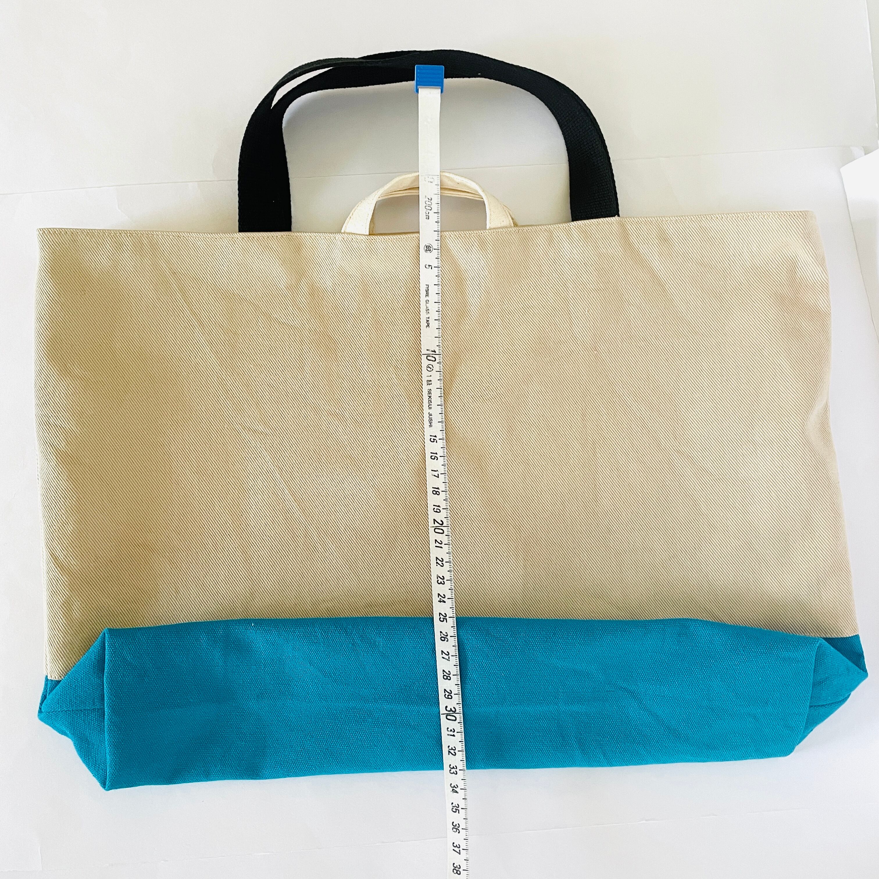 【再販可】大きめカラーレッスンバッグ きなりデニム11号帆布セルリアンブルー切替 35×45サイズ ループ付