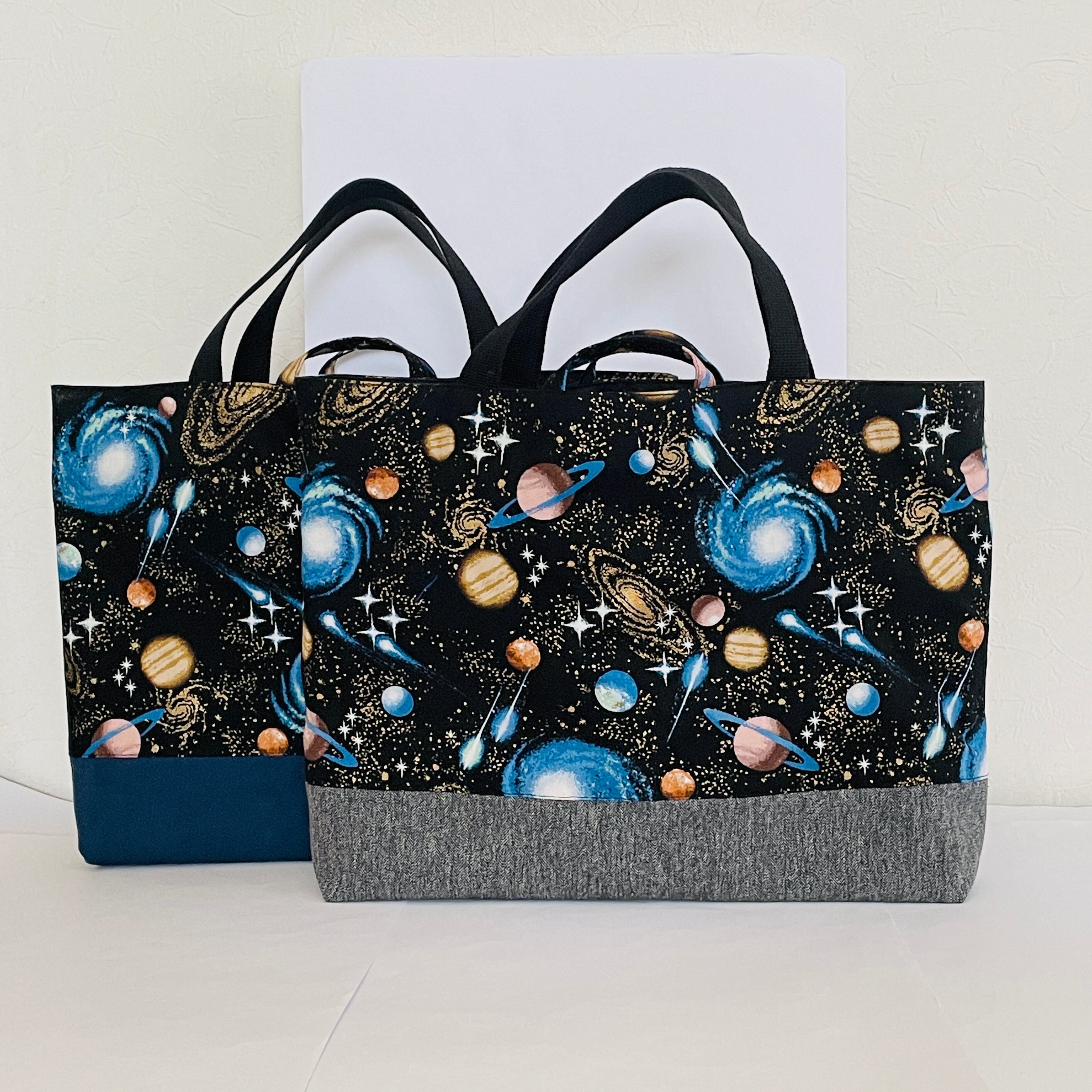 【再販可】大きめサイズ 宇宙の旅へレッスンバック ブラック/11号ダークネイビー帆布切替 35×45 ループ
