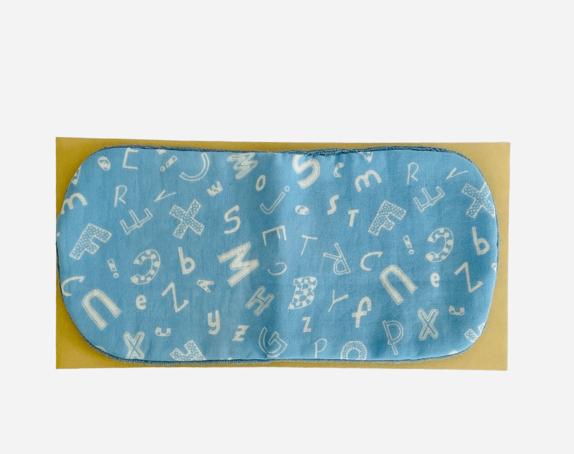 アルファベット柄に薄いサックス色も見た目も涼しげです。